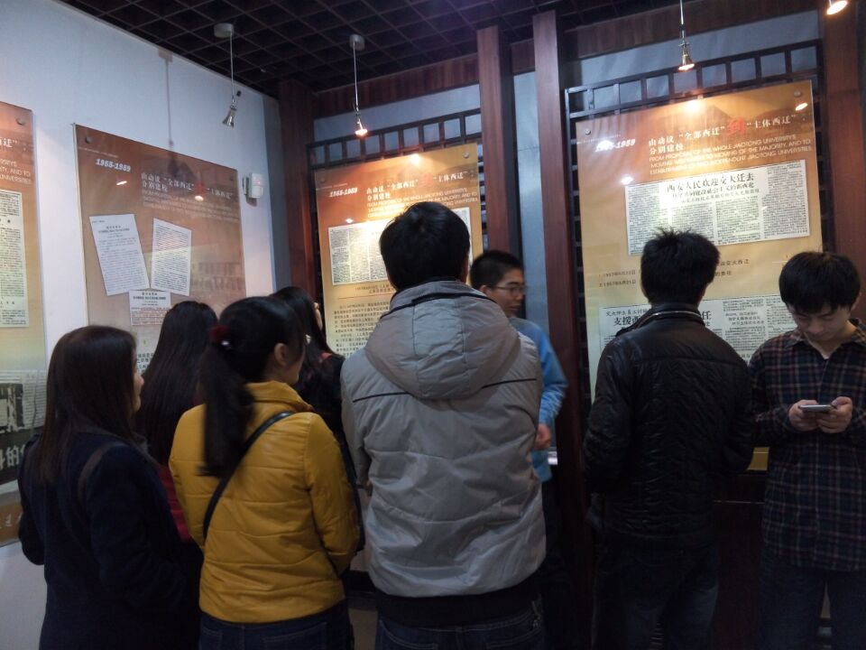 紧接着参观了位于北楼的西迁馆。西迁纪念馆展现了上世纪五十年代交大人从繁华的上海来到古城西安,扎根黄土地,开拓奋进,为使交通大学成为屹立于祖国西部一颗璀璨的明珠而艰苦创业的拼搏历程。它以生动的史实,展示了西迁的先辈们“无私奉献、艰苦奋斗、开拓创业、无怨无悔的如歌岁月,讲述了西安交大人对母校、师长、同事、学友的悠远难忘的情怀”。