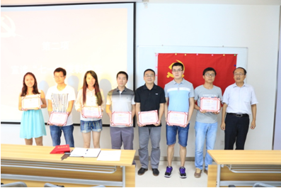 党总支委员会书记张早校教授宣读了院党总支决定,为了表彰在学院创先争优、“三严三实”学习等活动中表现突出的先进基层党组织和先进个人,院党总支经过扩大会议讨论通过选出化工系教工党支部等3个优秀基层党支部及9位优秀共产党员予以表彰,并由张早校教授向优秀党支部代表及优秀党员颁发了荣誉证书。接着由张早校教授宣读党总支批复,接受马娟等三位同志为中国共产党预备党员,由化工系教工党支部书记齐随涛作为领誓员带领预备党员面向党旗庄严宣誓。宣誓后新预备党员们怀着激动的心情表了决心,大家纷纷表达了今后将向优秀党员学习,进一步提高自己的党性修养,在各方面时时处处以一个共产党员的标准严格要求自己,为党的事业奉献终身。