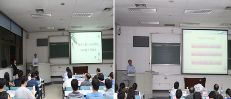 在主C-104举行了2015级新生开学典礼。学院党总支书记兼化机系主任张早校教授、执行副院长魏进家教授、学科主任杨伯伦教授、院长助理方涛教授、仲英书院院务主任助理岳甜、辅导员曹昆及学院教工、老生代表、150名新生等近200人出席了典礼。典礼由学院研究生王巍同学主持。