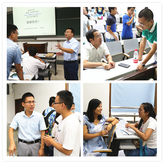 快速发展,越来越多的优秀人才汇聚在此,师资力量越来越雄厚,希望能有更多的优秀学子加入,共同学习进步。周强老师结合自身留学经历,做了题为“浅谈气固流动中的介尺度科学”的报告,阐释了“什么是介尺度科学”、“为什么关注气固流动”,幽默风趣、深入浅出。