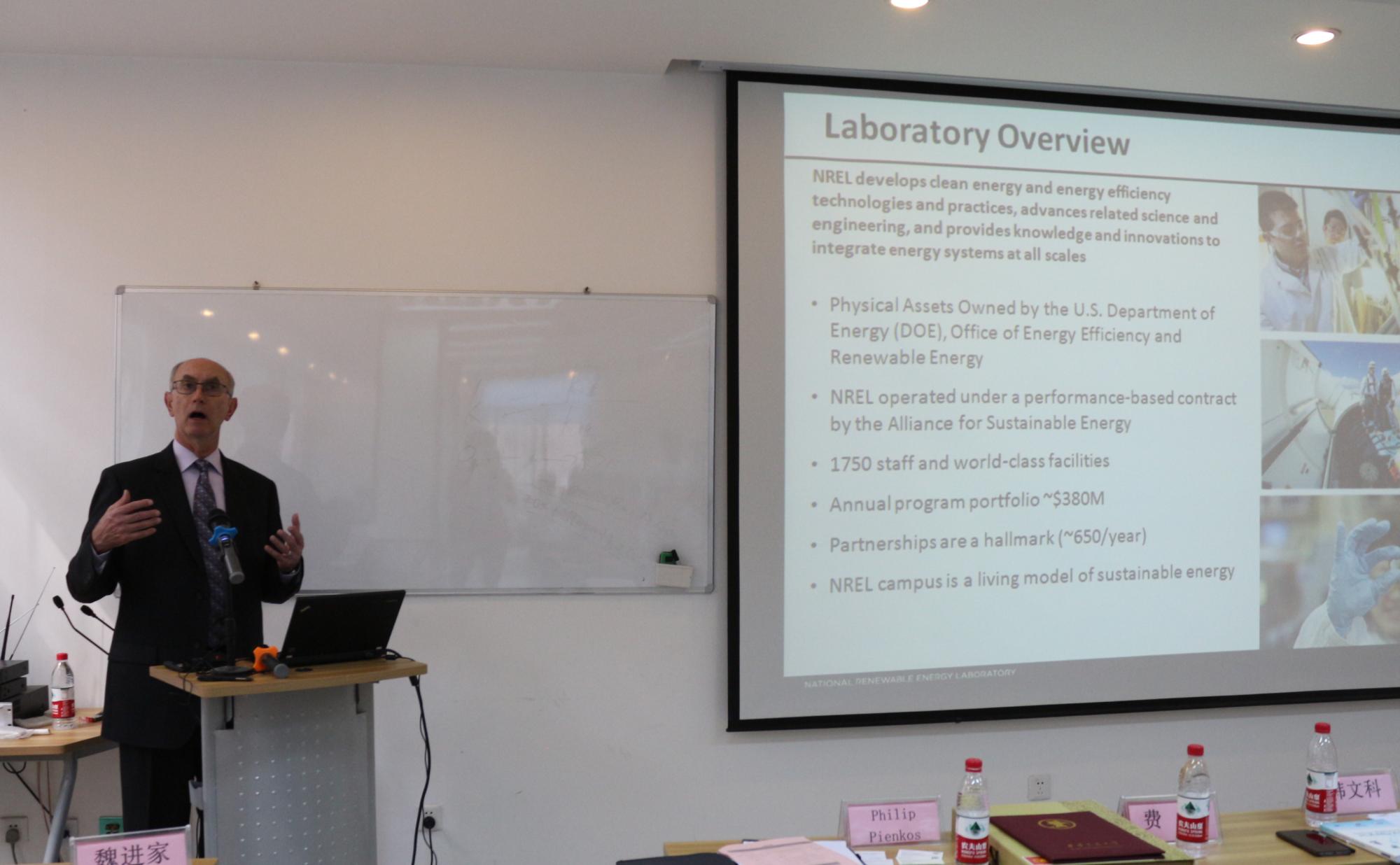 受聘仪式后,Philip Pienkos研究员做了题为“Perspective of Biofuel Research at NREL”的专题讲座。Philip Pienkos研究员首先对美国国家可再生能源实验室的组织结构和研究方向进行了简要的介绍,随后对生物能源的研发和生产进行了讲解,其中包括如何通过化学热解、生物转化以及生物固碳法等前沿技术,利用生物质和温室气体生产可再生能源和绿色化工品。最后Philip Pienkos教授根据美国能源部的战略方针,对生物能源的发展方向进行了展望并指出在科研中遇到的机遇和挑战。