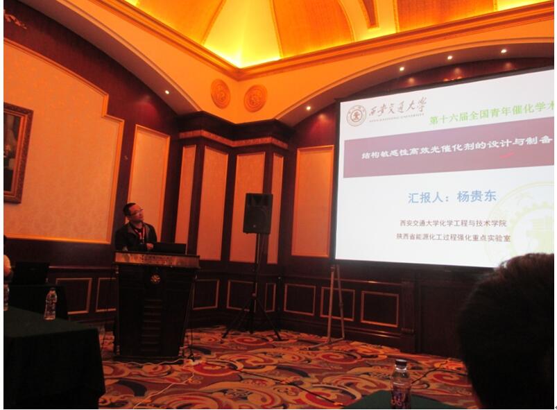杨贵东副教授主持了分会场会议,并代表工业催化研究所做了题名为“结构敏感性高效光催化剂的设计与制备”的报告。在报告中,杨贵东老师结合当前人们所面临的能源短缺与环境污染的问题,阐述了光催化技术在光解水制氢和环境治理等领域起到的关键作用。介绍了课题组近年在控制纳米光催化材料的微观结构,研究物料的传递、反应与材料生长之间的内在联系,发展光催化材料合成和结构控制新方法等方面的研究工作。报告得到了在场同行专家的高度认可和一致好评。此次参会加强了91porn
