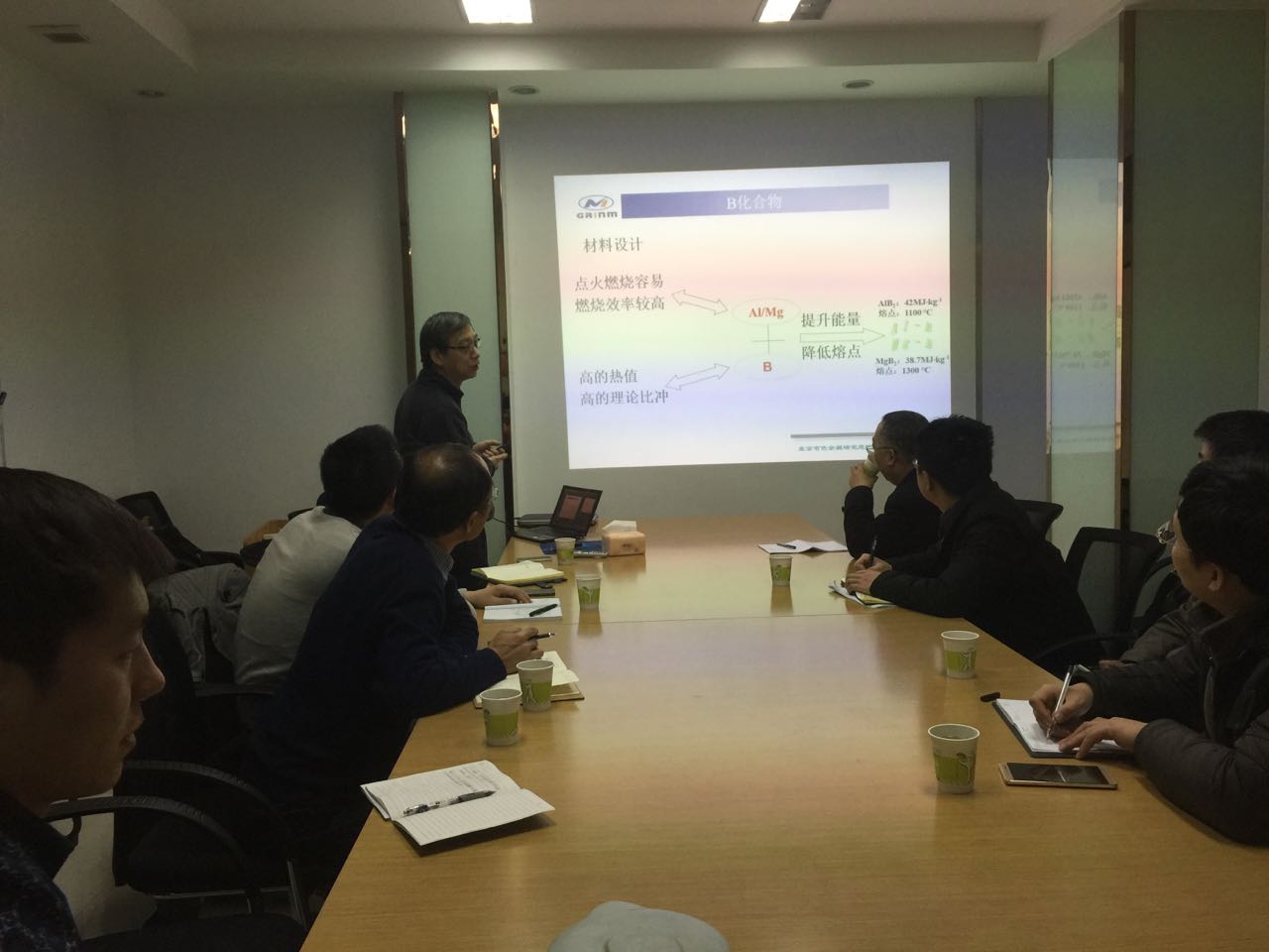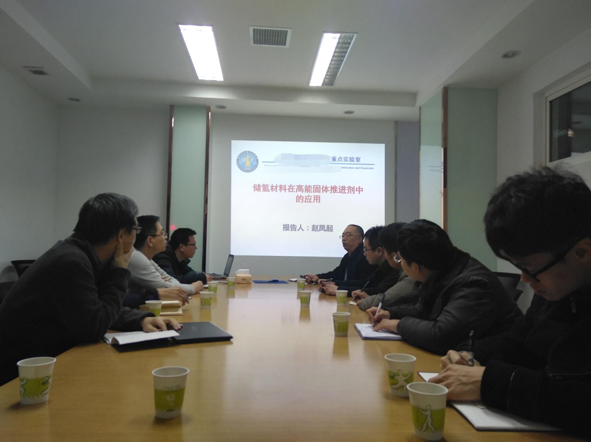 交流会首先由西安近代化学研究所某重点实验室主任赵凤起研究员进行报告,介绍了金属储氢材料在固体推进剂领域的应用背景、特性影响、存在问题及发展方向。随后,北京有色金属研究总院王树茂研究员对储氢合金的制备方法、设备,材料性能测试以及有研总院的基本情况进行了介绍。最后,杨福胜副教授代表张早校教授对本课题组的前期工作基础、取得的成果进行了汇报。汇报后赵凤起主任、张早校教授、王树茂研究员均表示应当加强相互交流、增进合作,了解其他研究单位在储氢材料研究中具有的新方法、新思路、新用途等,互相补充、共同进步,以期在储氢材料及其在国防领域的应用方面取得更大的突破和创新。
