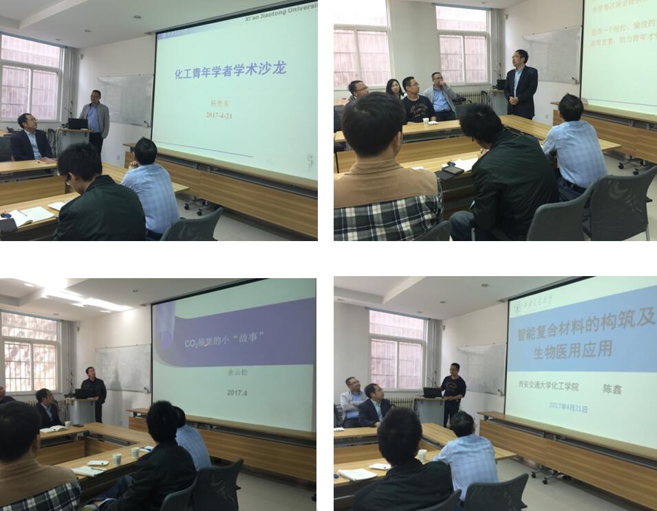 在106会议室举办了2017年第一期学术沙龙活动,陈鑫研究员、余云松副教授分别作了题为《智能复合材料的构筑及生物医用应用》和《CO2捕集的小“故事”》 的报告。全院青年教师参加了学术沙龙,院长魏进家作为特邀嘉宾出席了活动,并做了讲话。会议由院长助理杨贵东副教授主持。