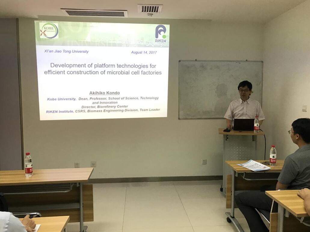 进行学术交流。访问期间,Akihiko Kondo教授做了题为“Development of platform technologies for efficient construction of microbial cell factories”的学术报告。Akihiko Kondo教授的报告主要讲述了平台技术的发展及其在微生物细胞工厂构建过程中的应用,并设计了具有特定功能的细胞直接用于生物燃料和化学品的生产。具体报告内容如下:细胞表面展示技术,包括:细胞粘附、生物转化、分子识别、信号传导等,Akihiko Kondo教授成功的在酵母乳酸菌、棒形菌设计了一系列细胞表面展示系统;合成生物工程平台的构建(GDCP),包括:合成途径、基因组设计、基因表达调控、基因簇设计、长链DNA合成。此外,Akihiko Kondo教授主导的生物炼制,细胞工厂,新药及药物载体设计等相关课题研究在生物化工和能源化工方面都具有重要的应用价值。Akihiko Kondo教授的讲座使学生开阔了视野、增长知识,还能积极促进91porn