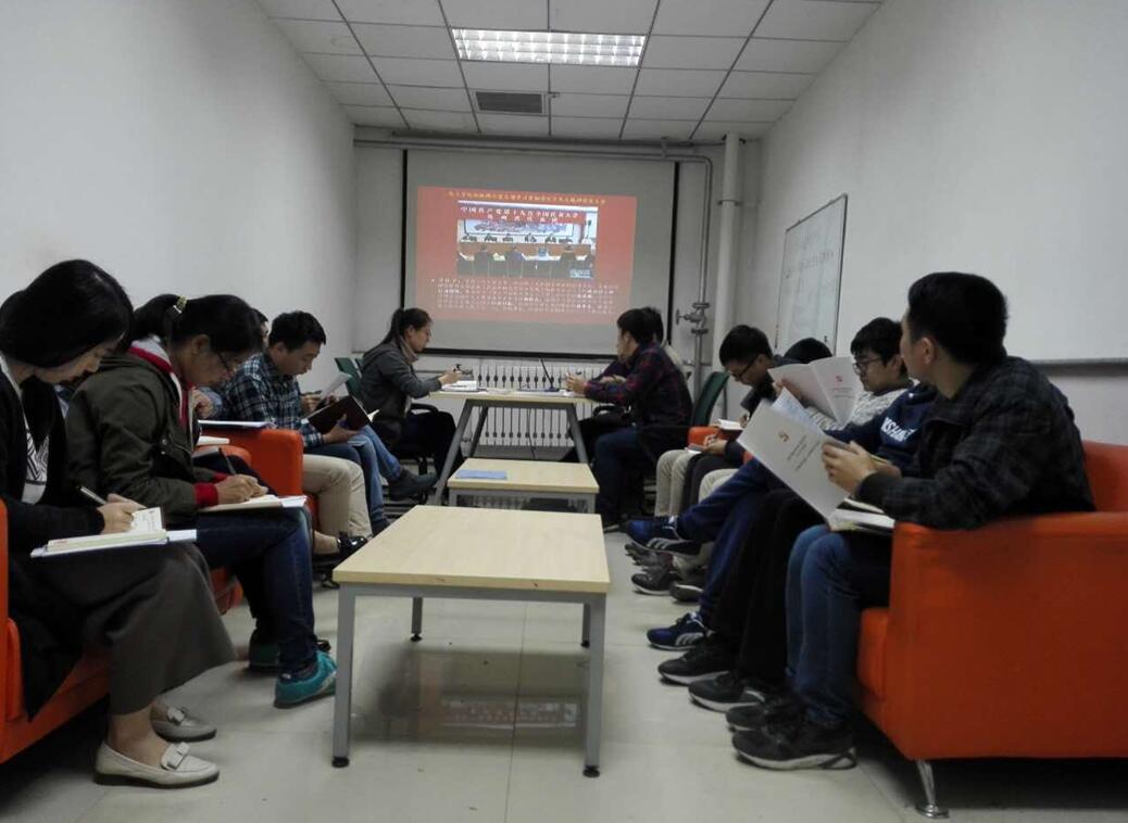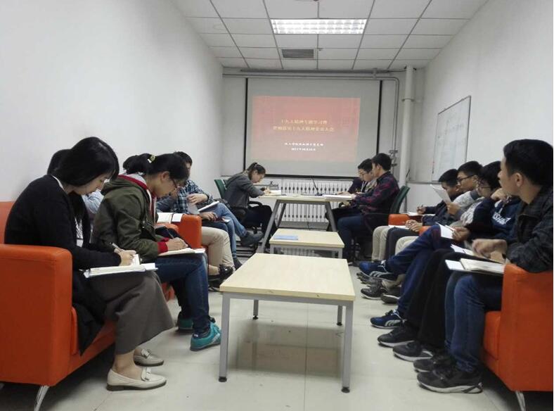实验楼401召开了十九大精神专题学习会。会议由支部组织委员文孟刚主持,党支部全体成员参加了会议,化工15级党支部书记罗沐蓝列席了会议。