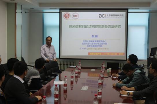 第三场报告会邀请到了美国加州大学洛杉矶分校、ACS Nano主编Paul S. Weiss教授,其现为美国艺术科学院院士、美国科学促进会会士,美国物理学会(APS)、美国化学会(ACS)、美国真空协会等重要学术组织的会士(Fellow)、美国电气和电子工程师协会(IEEE)的高级会员(Senior Member)及中国化学会等多个学会荣誉会士。Paul S. Weiss教授的研究领域涉及物理、化学、生物、材料等诸多方面,在国际学术领域享有极高声誉和名望。Paul Weiss教授是第一次来西安,对首次造访西安交大感到非常荣幸和激动。他表示今后会积极寻求两所知名学府在材料学科上的共通点,保持紧密的学术交流,并赋予双方教育团队更多的支持和机遇。随后,Paul Weiss教授作了题为“Nanotechnology Approaches to Biological Heterogeneity and Cellular Therapies”的精彩报告。报告中,Paul. Weiss教授分享了近年来他的研究小组在分子尺度上实现纳米材料精细组装的重要研究成果,尤其在热点材料-石墨烯纳米带的设计组装方面让在场师生受益匪浅。报告后,师生还与Paul Weiss教授就纳米装配领域的难点以及ACS Nano期刊与纳米领域的其他权威期刊如Nano Letters的区别等问题进行了深入交流。