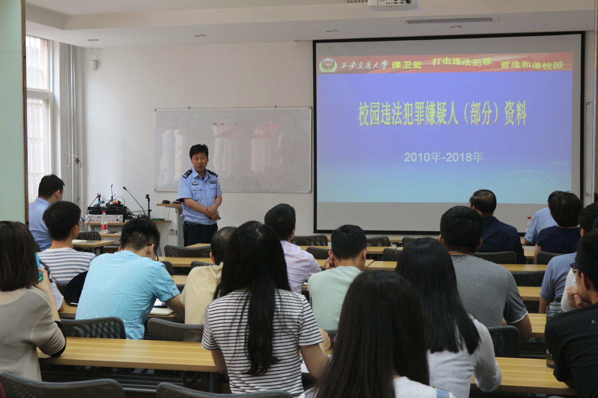 近年来,高校校园安全事件频发,特别是实验室安全问题已经引起了高校的高度关注,伴随的还有校园盗窃、传教、传销、校园诈骗等事件,关乎师生的切身利益。高队长从基本的消防安全知识讲起,运用大量的发生在我们身边的校园安全事件案例及视频,向师生展示了各类盗窃案件可能发生的地点、案犯惯用的盗窃手段以及目前还可能存在的安全隐患问题。同时从国家安全的高度出发,强调了大学生树立国家安全意识的重要性和紧迫性,引导师生意识到安全问题要从更加广义的意义上上升到国家安全层面。