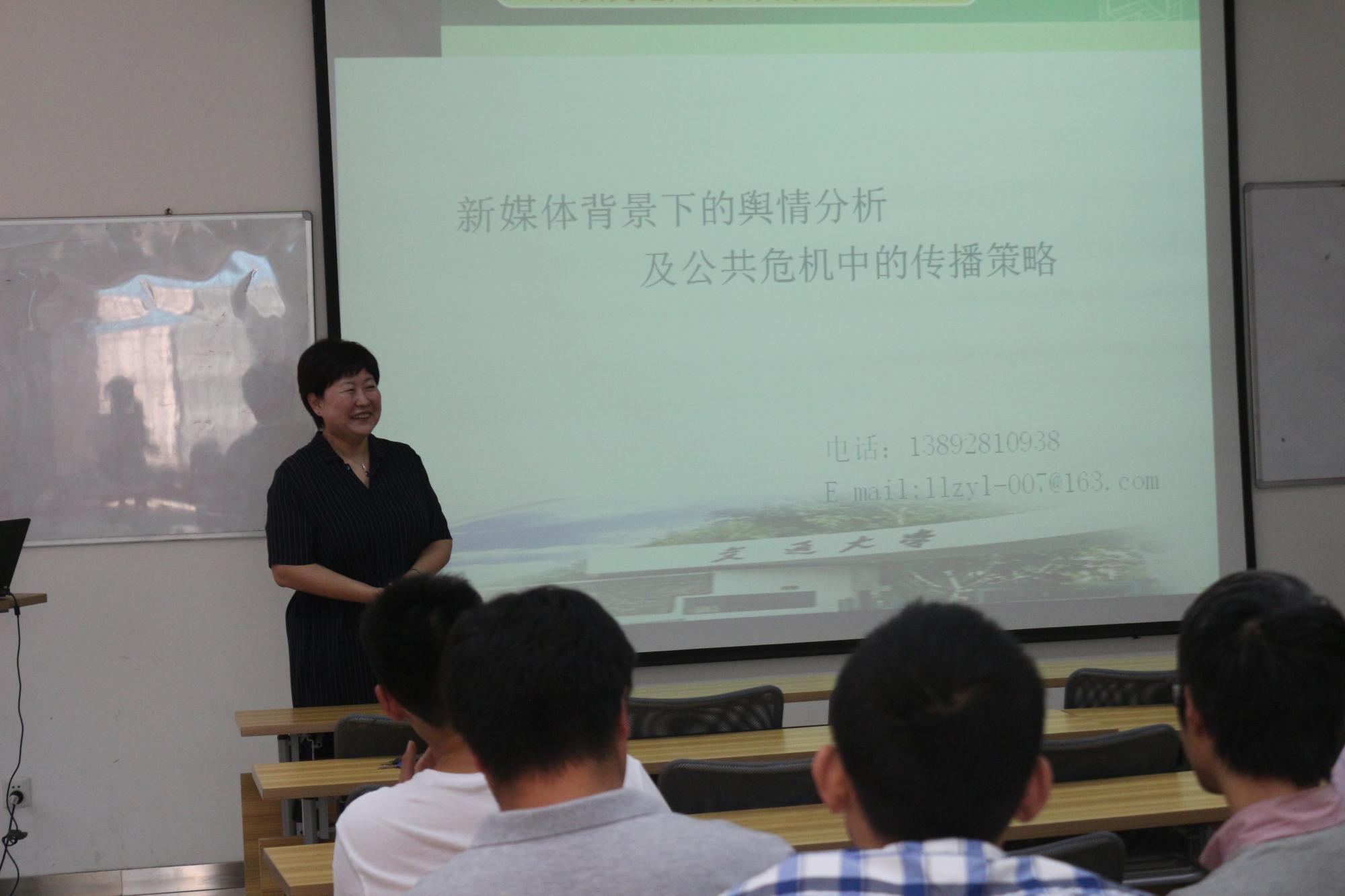 邀请人文学院杨琳教授为全院师生在院办106会议室开展了“新媒体背景下的舆情分析及公共危机中的传播策略”讲座,学院中心组成员、全院教师及部分学生代表参会,分党委书记张早校主持了本次讲座活动。