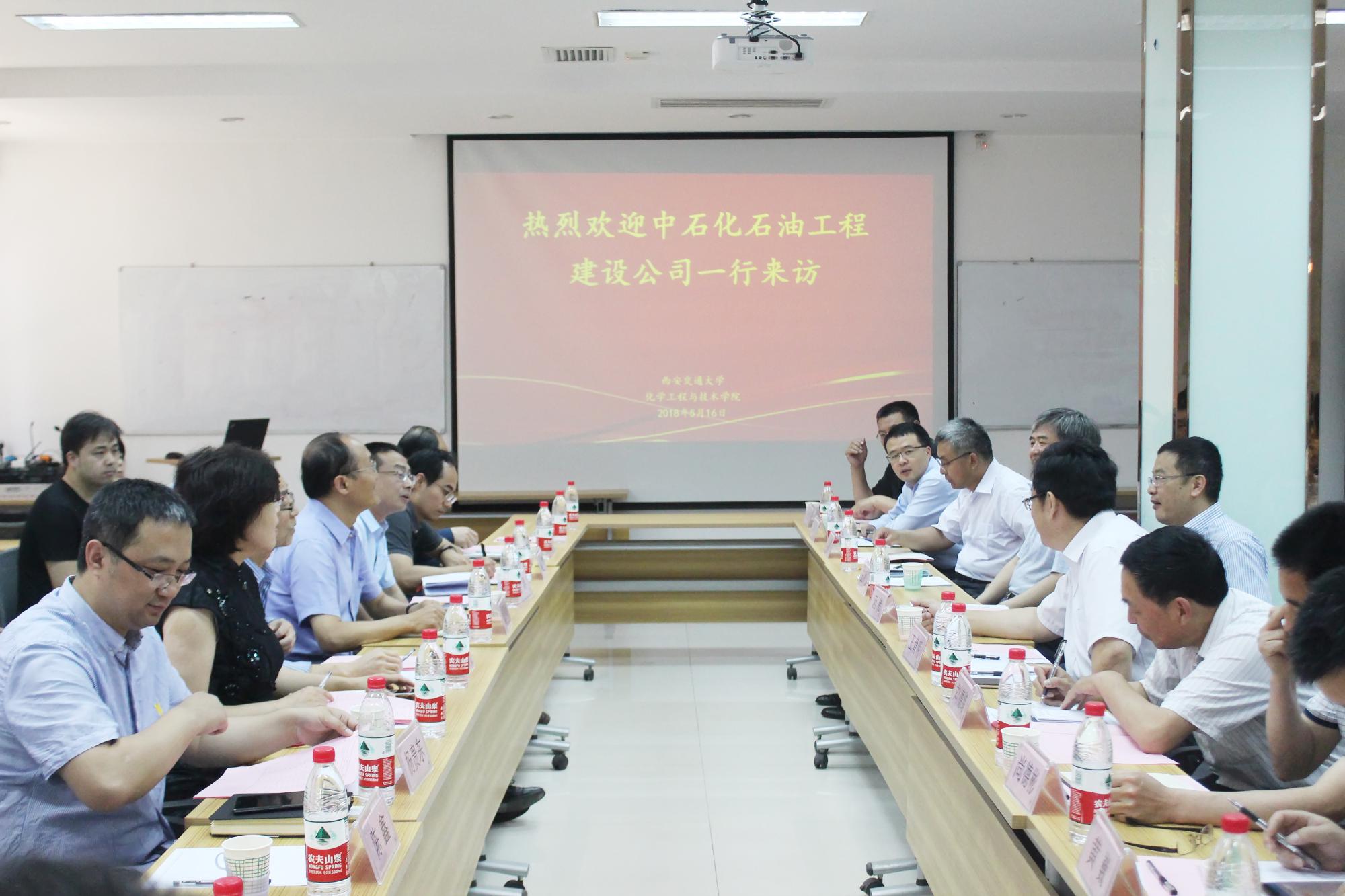 张早校书记首先对中石化一行来访表示热烈欢迎。王育明处长主要介绍了中石化石油工程建设公司的基本情况,公司长期致力于油田建设、海洋工程、节能环保、液化天然气、污泥治理等业务领域,本次来访旨在寻找业务互补高校,寻求长期合作伙伴,利用西安交大科研技术实现成果转化,提升企业竞争能力。