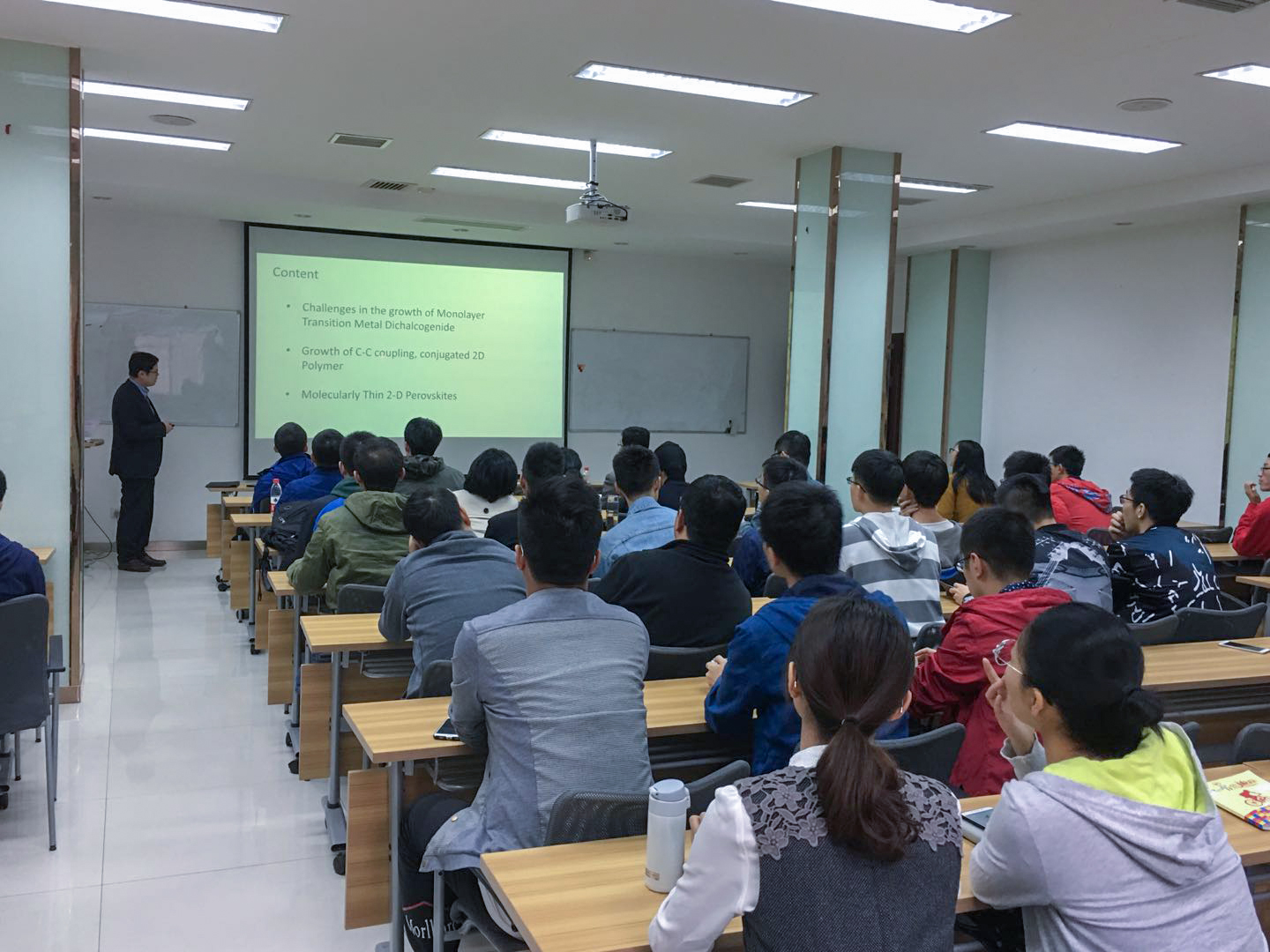 进行学术交流活动。访问期间Loh Kian Ping教授做了题为2D Transition Metal Dichalcogenides, 2D Polymer and 2D Perovskites的学术报告。