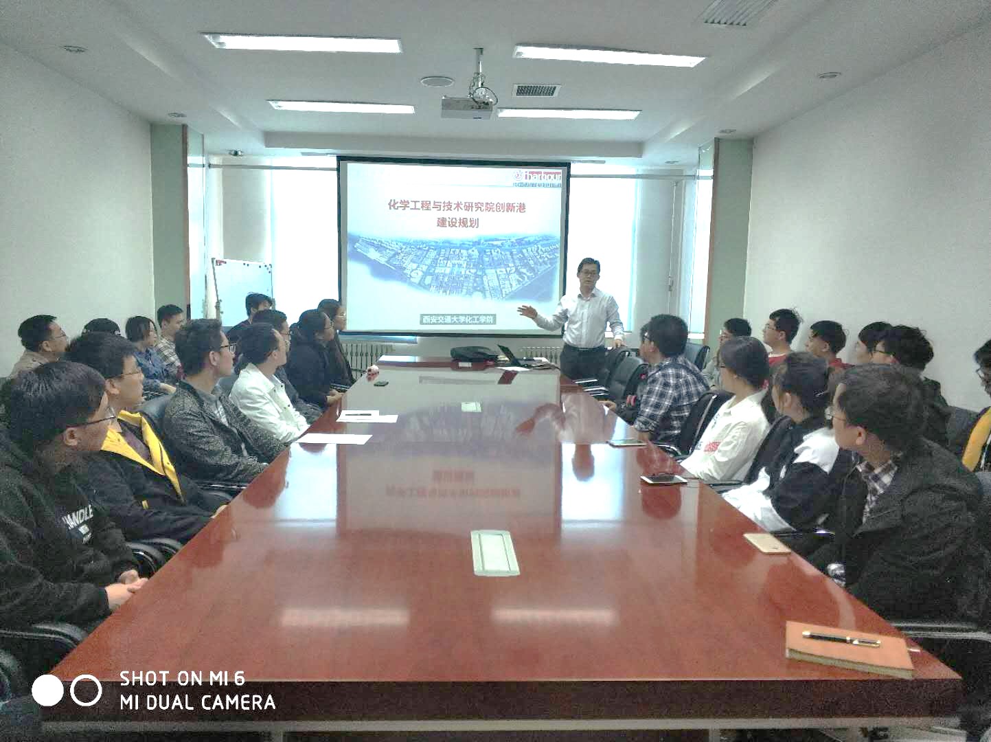 15日下午,学院召集即将入学的2019级硕士举行了专题班会,学院党委副书记沈人杰老师从化工研究院实验室的布置、研究生自习室的安排、宿舍的规划、配套建设、进度安排等方面向大家介绍了创新港内涵建设的情况,征求学生们对规划的建议。“相逢在伟大时代,每个人都是主角!“沈老师希望2019级研究生发挥主人翁精神,积极参与创新港建设,共建美好的新家。