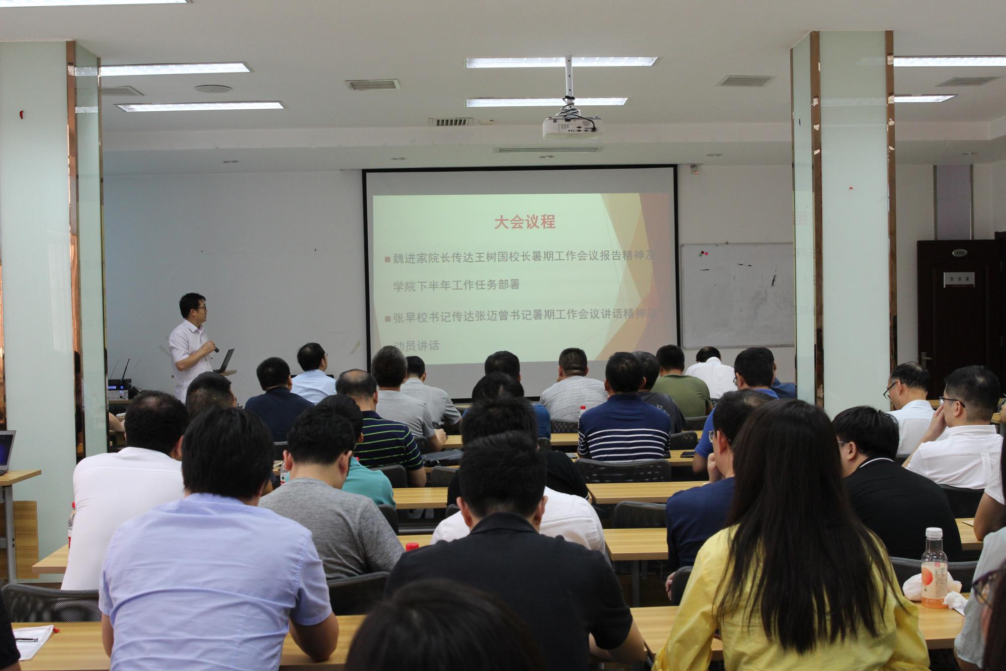 先后召开全院教职工大会、党政联席会,并赴创新港现场办公,传达学习暑期工作会议精神,并部署下半年工作任务。全院教职工大会由分党委副书记沈人杰主持,全院100余名在职教职工出席大会。全体班子成员出席党政联席会并赴创新港现场办公。