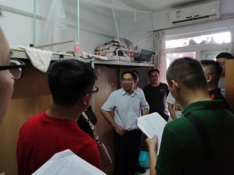 魏进家院长、沈人杰副书记带领全体班主任、系负责人和辅导员走访了今年的本科新生,看望报到的新同学。