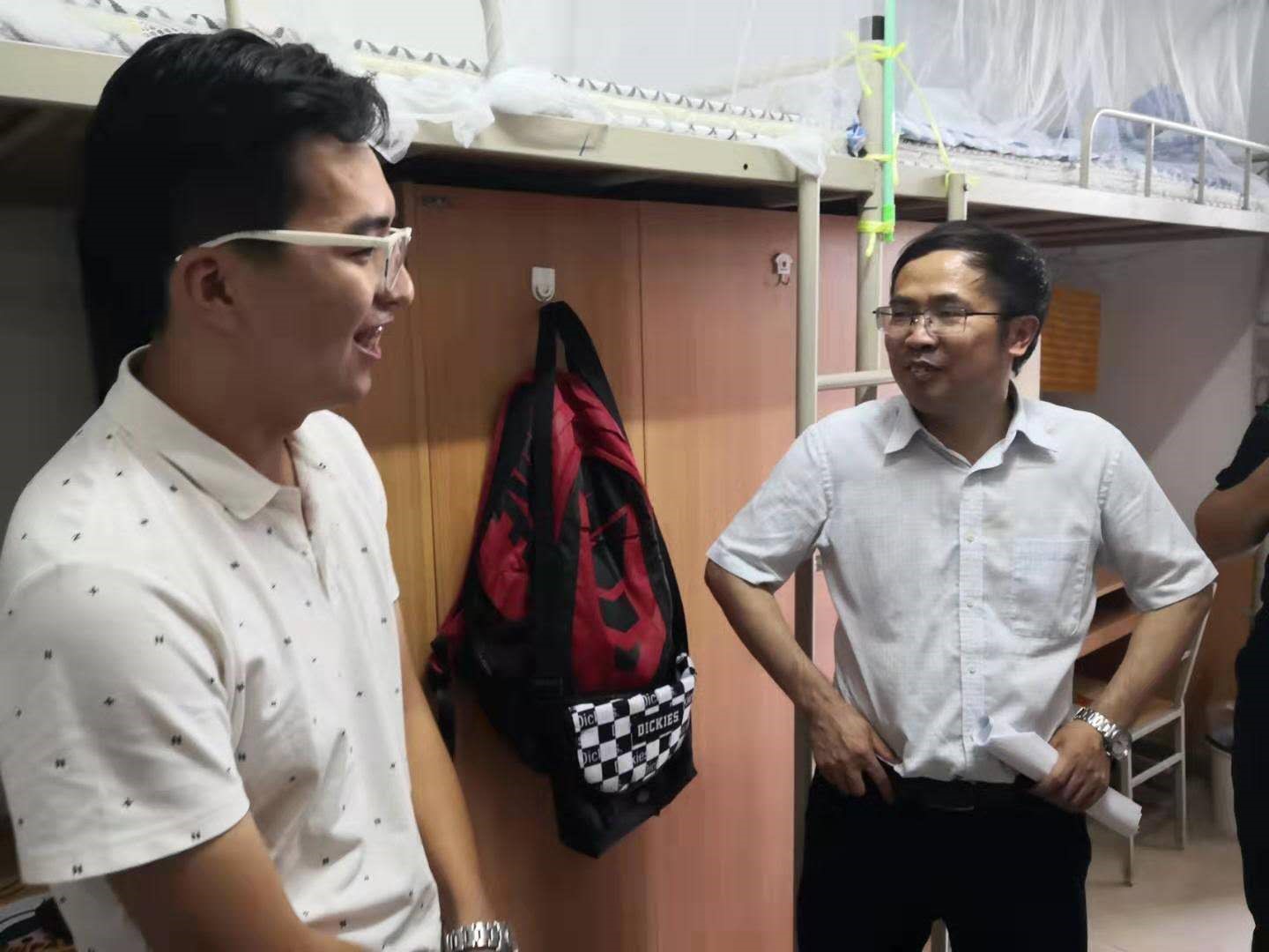 每到一间宿舍,魏院长一行都受到了学生和家长们的热烈欢迎,他详细了解了同学们的住宿和生活情况,关切地询问了学生们来自哪里、是否适应学校生活、还有什么困难,细致入微的关怀让同学和家长们非常感动。大家与同学们就生活、学习、个人兴趣、生涯规划,都做了深入的交流和指导。