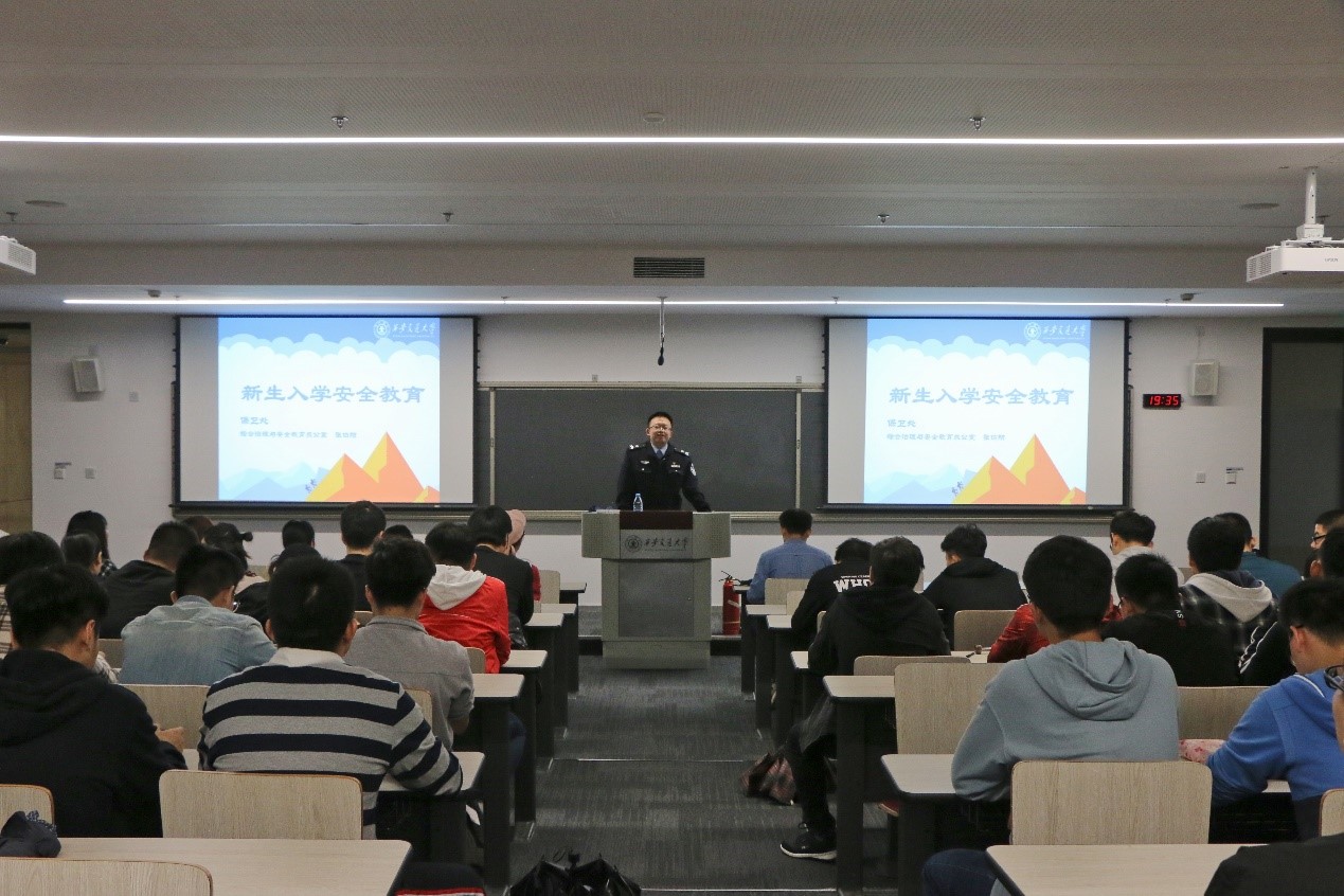 邀请了保卫处的张伯阳老师在创新港涵英楼给全体硕士及博士新生开展了新生入学安全教育。