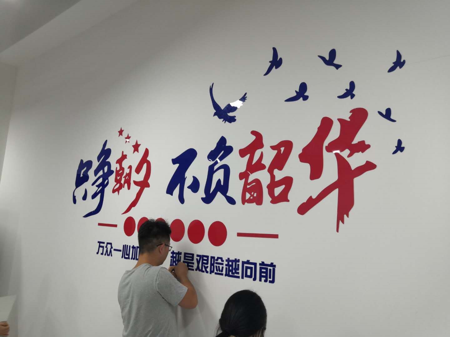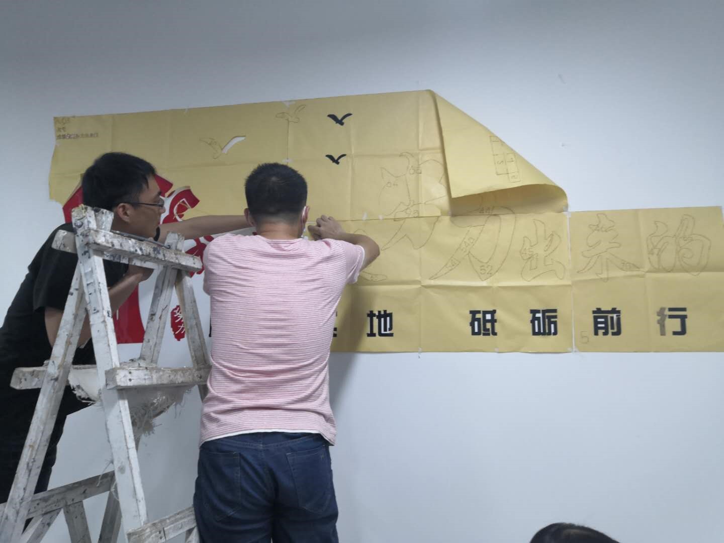 研究生们发挥主人翁精神,积极参与研究院的建设。“我们总共花费了三天才把所有房间和走廊贴完,贴画零件都是是分开的,我们要一个个找到对应的零件按照图纸去粘贴,这是一项十分繁琐且费时的任务,但我们不怕苦不怕累,党员不干谁去干,既是替学院分忧,也是推进创新港建设,我们累并快乐着。”硕9133党支部书记朱鹏飞说。