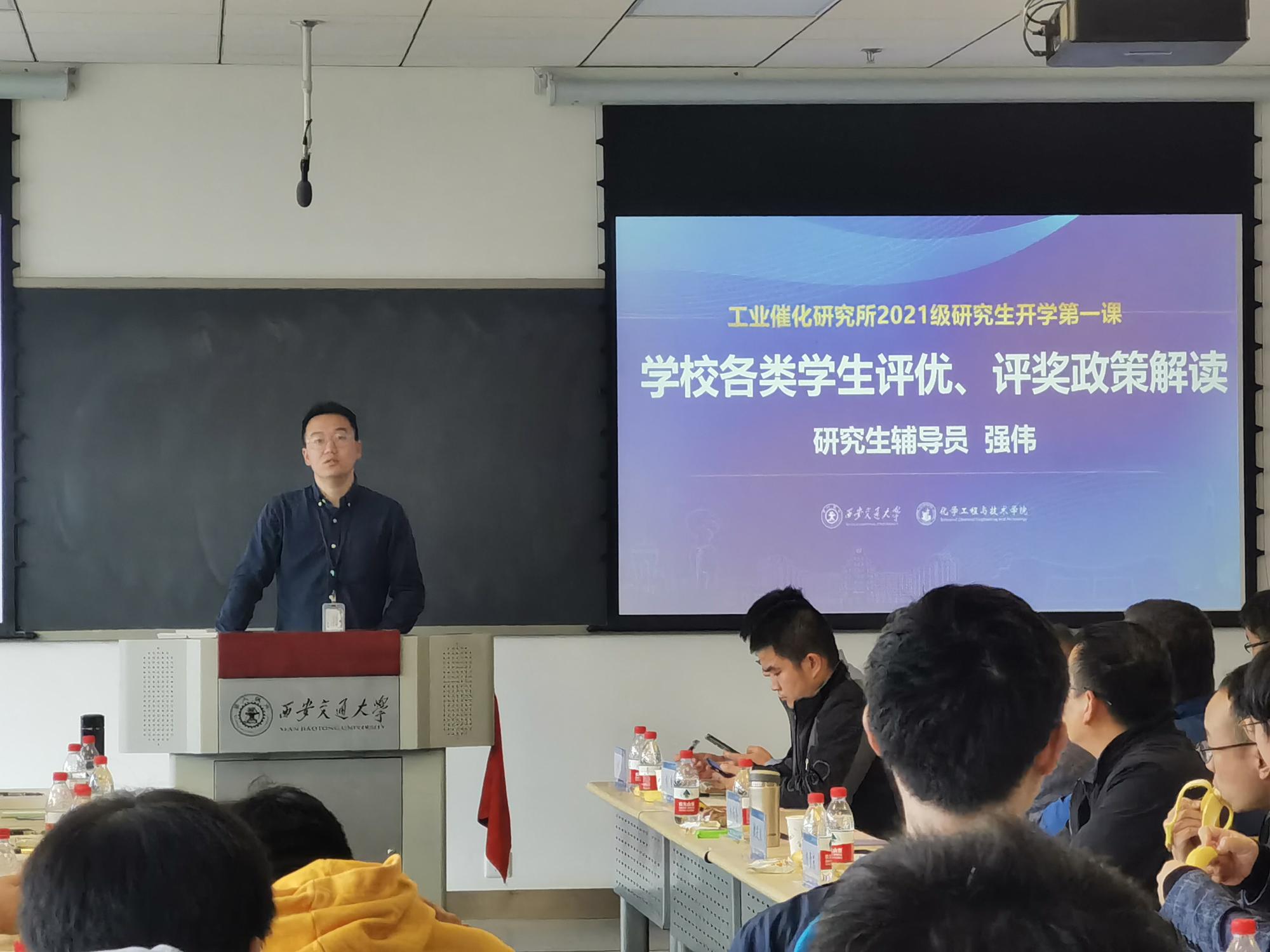 副院长、工业催化研究所所长杨贵东、研究生辅导员强伟、2021级全体研究生新生以及工业催化所师生代表参加本次迎新会,活动由工业催化研究所副所长谢涛主持。