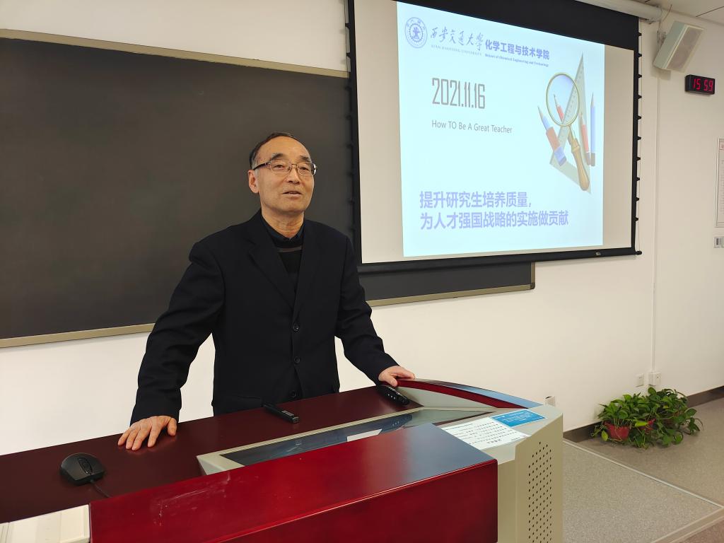 学院资深导师杨伯伦教授作了研究生指导经验专题交流,杨老师回顾了自己的学生培养情况,并从专业素养提升、因材施教作好选题、以及全链条培养质量保障等四个方面向在座导师分享了如何提高研究生导师的指导能力。与会导师就各自培养过程中的问题和困惑进行了交流讨论。