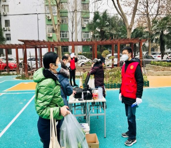 “二村很多楼层都没有电梯,我印象最深的就是蔬菜卸载,分装、联系住户发放,并为独居老人上门送菜,我们都是爬楼梯挨家挨户送菜,真的很辛苦,可是当我看到学校和学院的领导亲临一线,从早到晚,真的非常感动,我觉得咱们上下有这样一股劲,就没有不能克服的困难!”,来自化机教工党支部,学院实验中心主任高秀峰如是说。