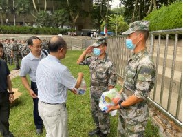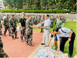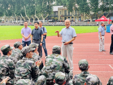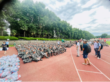 在东操场慰问托管在本院的2021级军训学生。分党委书记张早校、副书记陶磊、副院长伊春海带领四位新生班主任老师及院办同志一同向133位2021级学生及教官致以诚挚的问候并送上慰问品。