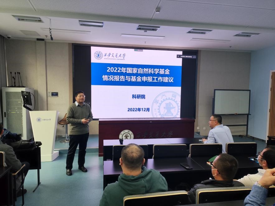 2022年自科基金的申报和获批情况,并对2023年国家自然科学基金的相关政策进行了解读,他从学院年度基金获批情况、十三五期间基金获批情况、十四五获批基金计划几方面进行综合分析,指出了下一步学院基金申报工作需要努力的方向。科研院基础与海外合作处主管何会针对申请书撰写过程中的科学问题属性等要点进行了详细讲解和说明。