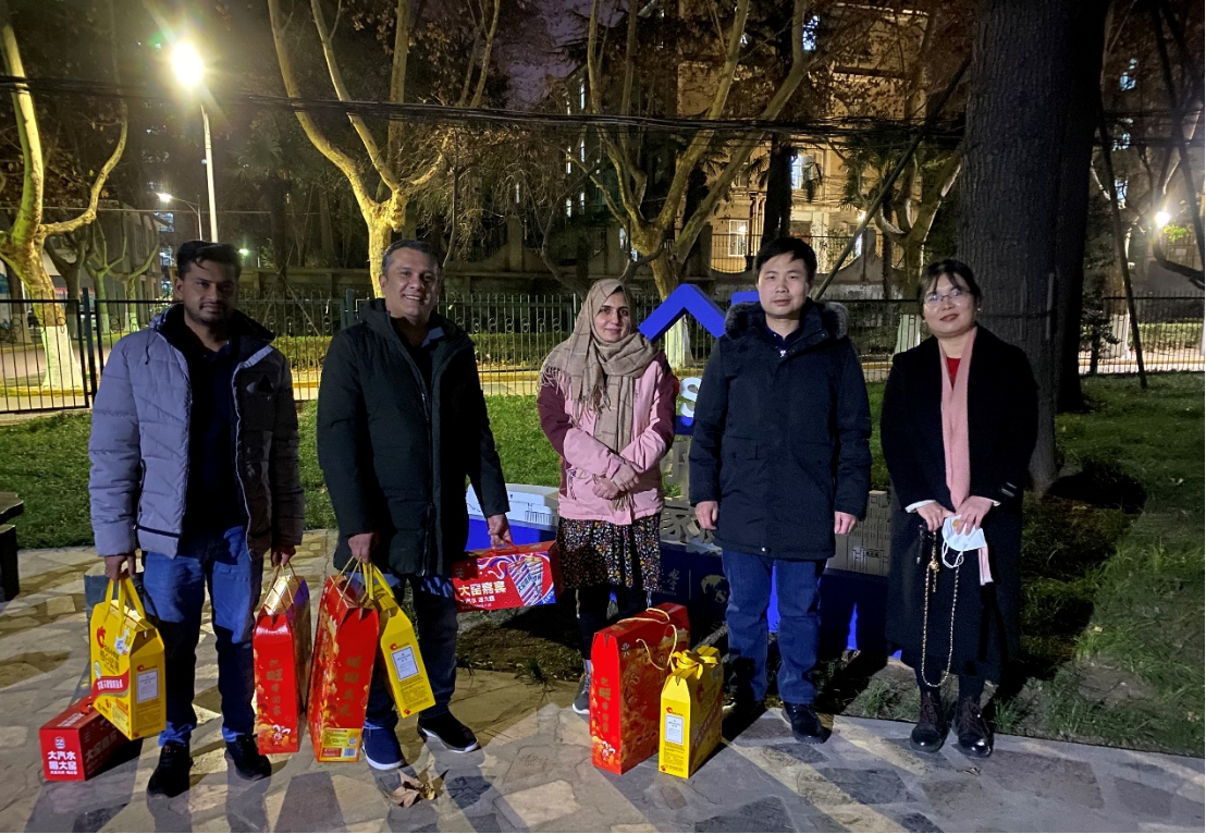 在兴庆校区,学院院长杨贵东、副书记陶磊为留校本科生送去新春礼包并详细了解其留校期间的生活情况、假期规划等;创新港19号楼,学院副院长余云松走进实验室查看留校同学的实验开展情况,并细致关心同学们留校期间的生活是否便利,同时送去新春祝福;副院长云松在创新港和在校度过中国春节的学院留学生进行了座谈,了解其学习生活情况,副书记陶磊、教务员周婷共同看望了学院兴庆校区留学生,希望他们能更好了解中国习俗文化,度过一个难忘美好的春节。