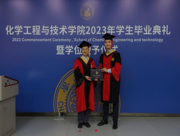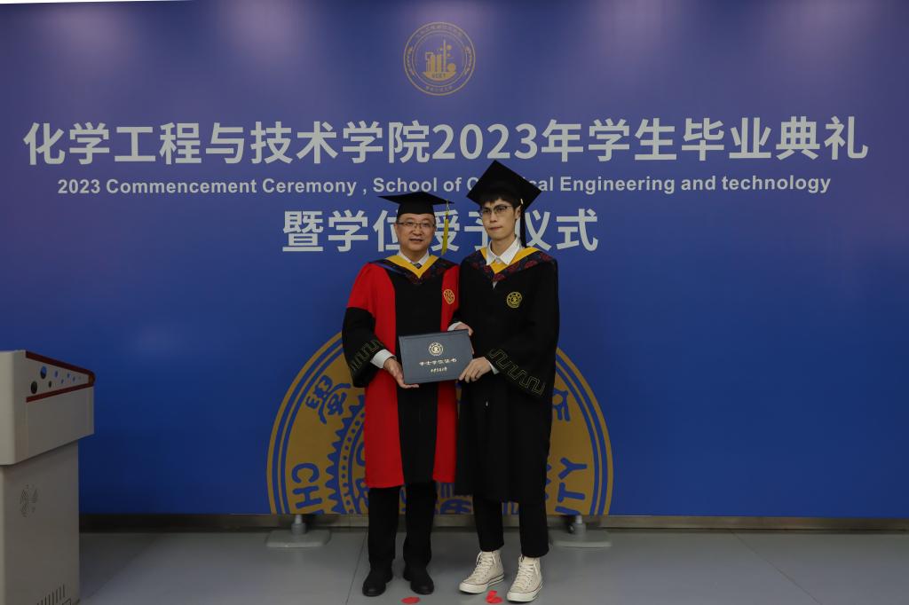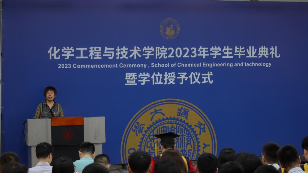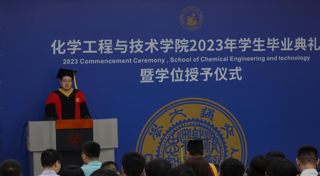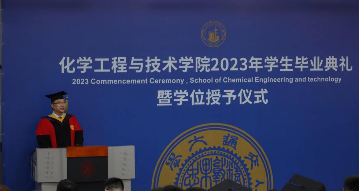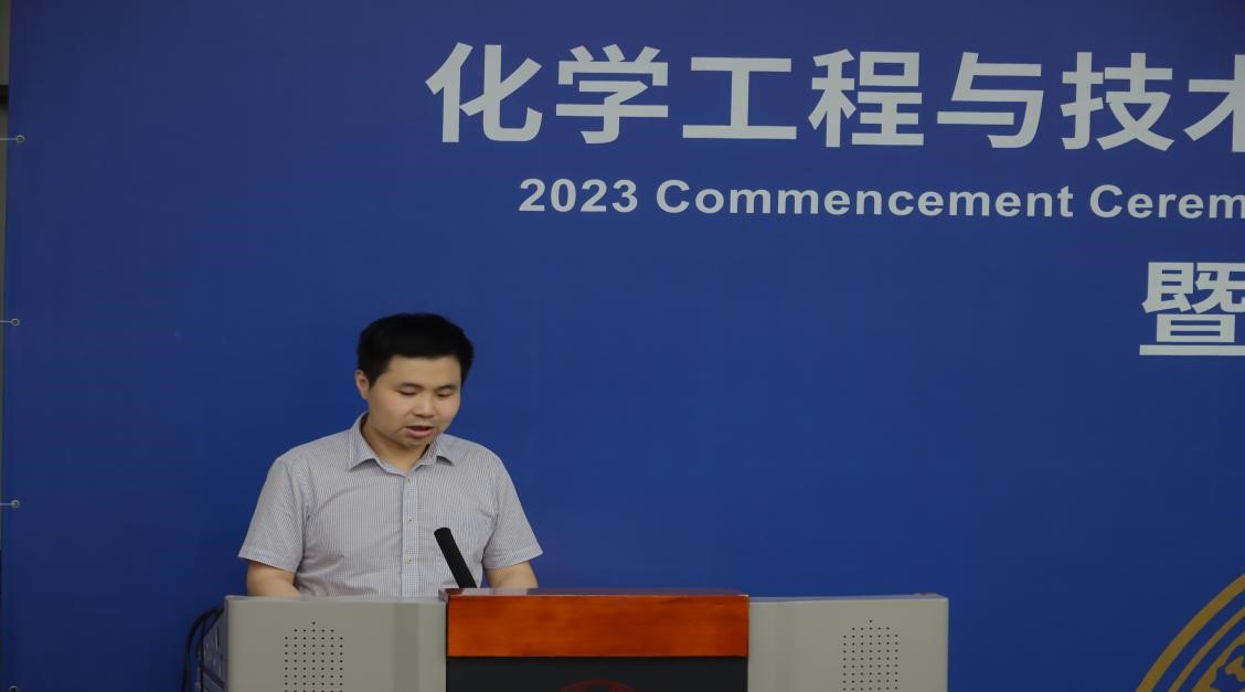 杨贵东殷切寄语2023届毕业生。他首先代表学院向获得学位的全体毕业生致以热烈祝贺,向家长们致以衷心感谢,接着回顾了疫情防控形势下,学院自2019年以来在师资队伍、人才培养、科学研究、学科建设以及国际交流等方面取得的一个又一个瞩目成就,他强调这些成就的取得离不开全体毕业生的智慧和汗水。面对新一轮科技革命和产业变革给社会生活带来的巨大的冲击和挑战,如何适应新时代的冲击和挑战,成为科技创新的生力军和科技体制变革的引领者,他对全体毕业生提出了两点希望:一是希望同学们树立“终身学习”的理念,涵养“爱学、能学、会学”的品质,在各行各业充分展示交大化工学子的智慧和担当;二是既要仰望星空,也要脚踏实地。继续发扬好“西迁精神”,牢记校训,将实干精神融入到每项工作中,能够在社会历练中快速成长,造福社会。