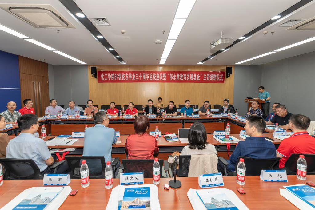 教育事业的发展,校友们集体向“郁永章教育发展基金”注资捐赠了三十余万元。同时郁永章教育发展基金委员会秘书长高秀峰副教授也向校友们详细介绍近年来基金的使用情况,为校友们对学院和化工学子的关心关爱表示由衷的感谢。“郁永章教育发展基金”自2015年成立以来,累计发放奖助学金22.1万元,实现了多年级、多层次的覆盖,受益学生人数达118人,其中“郁永章奖学金”获得者81人,“郁永章助学金”获得者29人,“郁永章杰出奖学金”获得者8人。覆盖博士生34人、硕士生53人和本科生31人。春风化雨润物无声,“郁永章奖学金”和“郁永章助学金”不仅向一批批莘莘学子给予了肯定和温暖,更在所有化工学子心中赓续下了饮水思源、回馈母校、回馈社会的情愫。