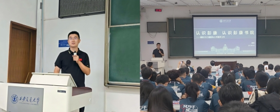 彭康书院副主任胡欢介绍书院概况。他提及书院创办历史与院训院风,讲解教育管理服务系统涵盖的内容,介绍书院师资团队,鼓励新生利用书院资源、参与校园文化生活,实现全面发展。