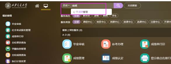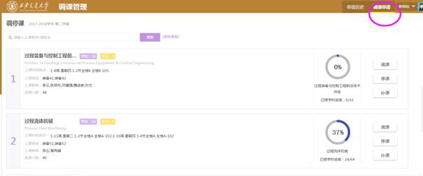 3、进入后,点“调课申请”,教师界面会有三个选项:
