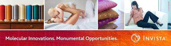 作为全球最大的化学中间体,聚合物和纤维的综合生产商之一,英威达旗下拥有LYCRA®, COOLMAX®, CORDURA®, STAINMASTER®和ANTRON®等主要品牌。英威达在尼龙、氨纶和聚酯领域拥有先进的技术,产品应用于服装、地毯、汽车安全气囊等品种繁多的日常用品。英威达是科氏工业集团独资子公司,总部位于美国,在全球有50多个运营点。
