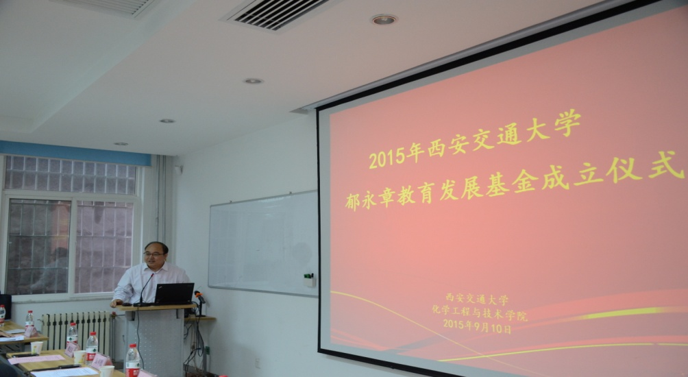 西安交大教育基金会秘书长赵卫滨在仪式上宣读了“郁永章教育发展基金”章程。