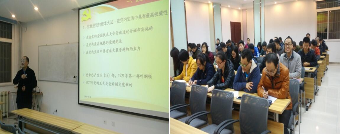 全体研究生党员上党课,党课的主题是“学习党章实践党章做合格的共产党员”。