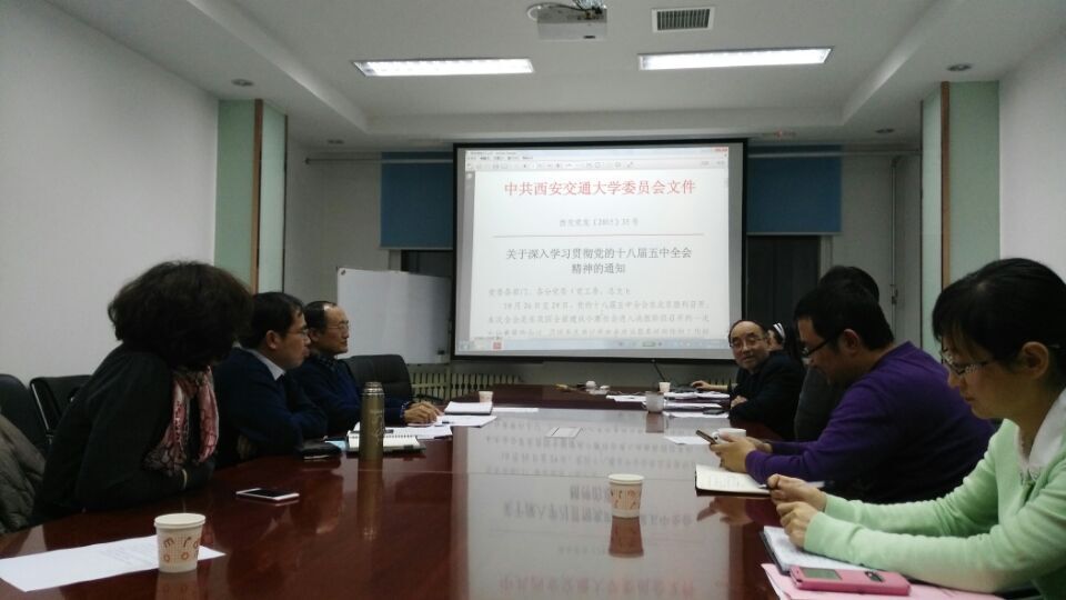 为了深入贯彻党的十八届五中全会精神,使学院的发展能紧密结合十八届五中全会确定的目标和任务,根据学校党委《关于深入学习贯彻党的十八届五中全会精神的通知》(西交党发【2015】35号)文件精神,11月26日,91porn 党总支组织开展院党政联席会成员“十八届五中全会精神”专题学习会,会议由党总支书记张早校教授主持。