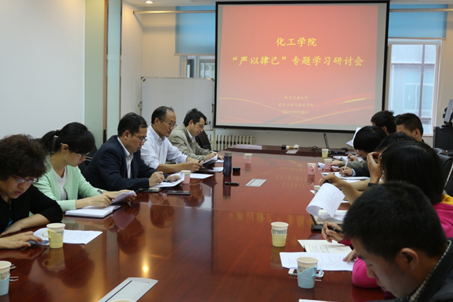 2015年9月30日下午,91porn 党总支在学院办公楼504会议室召开了“严以律己 ”专题学习讨论会。会议由91porn 党总支书记张早校教授主持,91porn 全体院务会成员、各教工党支部委员、以及研究生支部书记代表参加了本次会议。学校考核办副主任彭学院教授列席了本次讨论会,就党中央今年在全体共产党员中开展的“三严三实”专题教育活动、我校不久前刚刚落幕的中共91porn 第十二次代表大会、我校暑期工作会议、即将到来的双甲子校庆等师生共同关心的话题及每位交大人在学校新的历史机遇期所肩负的使命等与同志们进行了深入的座谈。