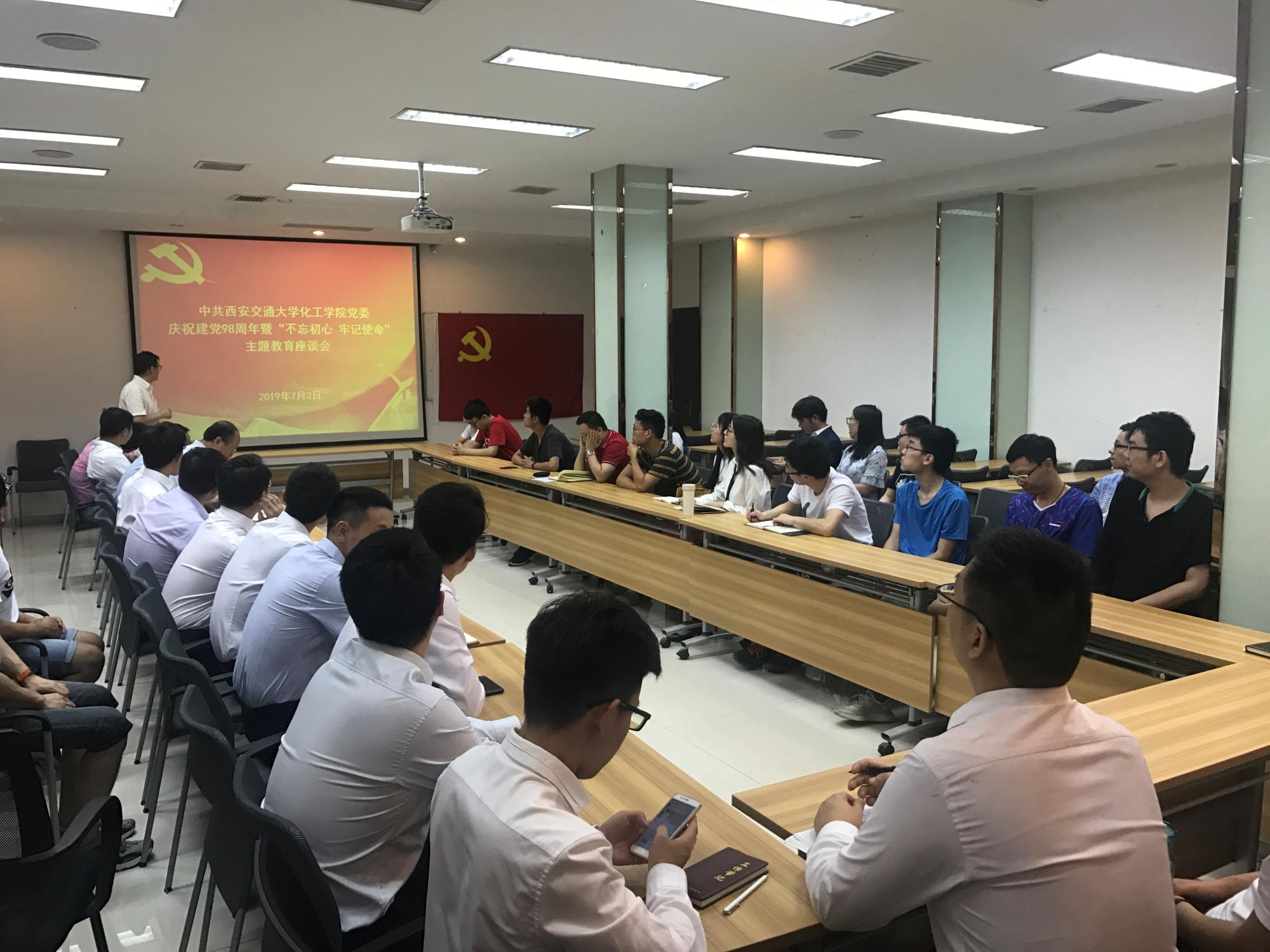 分党委于7月2日晚在办公楼106会议室召开了庆祝建党98周年暨“不忘初心牢记使命”主题教育党建座谈会,会议由分党委副书记沈人杰主持,分党委委员、各基层党支部支委、优秀党员师生代表、新发展党员、支部积极分子参加。