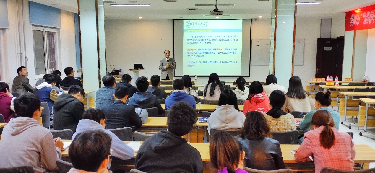 张早校教授从“党的政治建设是党的根本性建设”、“七方面要求全面加强党的政治建设”等角度讲解了“习近平这样庆祝党的97岁生日”,并分析了中国共产党取得成功的五大原因。在阐述习近平总书记关于开展“不忘初心、牢记使命”主题教育讲话时,当他谈到习近平总书记曾说过的“无论我们走得多远,都不能忘记来时的路”这句话时表示深有感触,他说一个国家不能忘记曾经走过的艰难路程,同样作为在校的研究生党员和积极分子也要记得自己读研的初心。