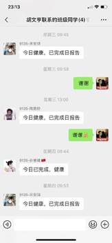 硕9135支部党员联系群众制度》制定了《防控期间党员联系群众安排》,由支部成员联系班级同学进行防控精神宣传、防控知识普及、学习科研辅导及心理辅导,并收集所联系同学的健康日报告情况,确保同学每天都进行健康日报告。