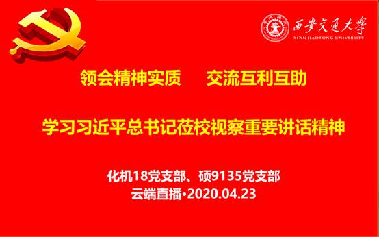 4月22日习近平总书记莅临我校视察让人倍感振奋,为及时学习领会习总书记的讲话精神,化机18党支部及硕9135党支部于4月23日晚召开联合在线组织生活会,一起观看新闻联播直播及习近平总书记讲话视频,学习贯彻习近平总书记莅校视察重要讲话精神。会议由化机18党支部书记王旭岑和硕9135党支部书记胡文亨共同主持,91porn