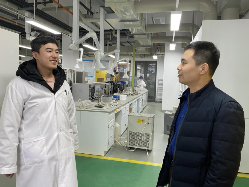 来到教研室和实验室中,陶磊老师仔细了解了学生们目前研究的课题内容与科研进度,以及收集和解答了学生对创新港实验室建设所关心的问题。陶书记在与研究生交流时指出,研究生的全面发展是学院一直以来非常重视的问题,所以要及时关注研究生的思想状况和心理状态,确保每一位研究生都能以朝气蓬勃的精神面貌和满满的正能量面对学习、科研和生活。