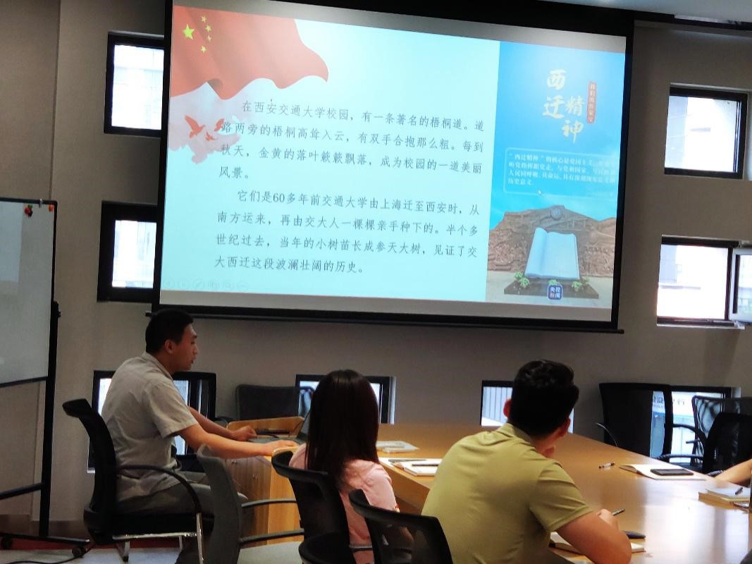 孙力涛同志为我们带来了文章学习《西迁精神是我们传家宝》。他讲到西迁精神是交大宝贵的精神财富,胸怀大局,无私奉献,弘扬传统,艰苦创业是西迁精神的精髓。我们要学习前辈们舍小家顾大家的奉献精神,积极投身到党和国家最需要的地方去。组织生活会的最后,孙力涛同志就新成立支部上存在的问题进行了总结分析,讨论通过了成立支部党小组的工作办法,并对接下来的组织生活和支部活动进行了相关安排。