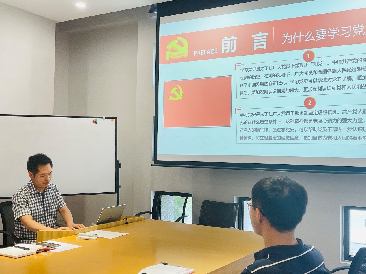 支部书记周德重同志首先为我们讲授了“四史”学习之党史的党课,重点介绍了为什么要学习党史、学习党史的重要性以及中国共产党成立的历史背景。他提醒我们以史为鉴,不忘初心,牢记使命,立足当下学科专业,积极发挥党员模范带头作用,夺取科研高地。