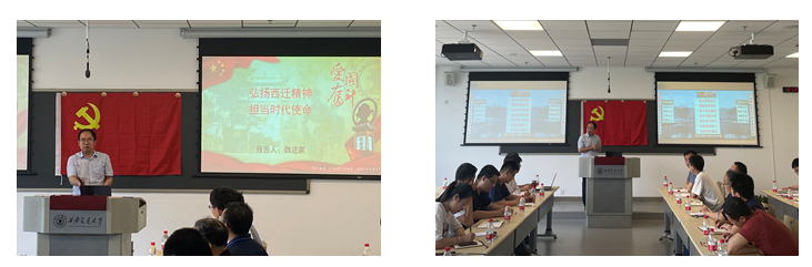 党委委员魏进家院长莅临指导并以“弘扬西迁精神,担当时代使命”为主题为支部成员做专题党课。