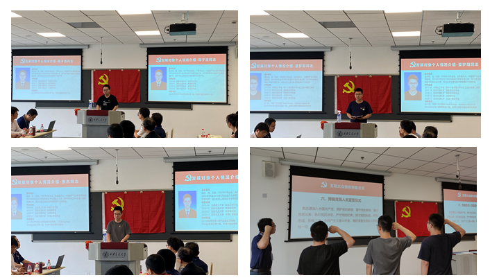 会议首先研究讨论发展对象陈子浩、夏梦阳、张杰三位同志转为中共预备党员事宜,三位同志汇报了入党动机等相关情况,之后入党介绍人均同意三位同志加入中国共产党;支部委员会报告认为三位同志思想先进,手续完整,基本具备党员条件。支部大会全票通过了接收陈子浩、夏梦阳、张杰三位同志为预备党员的决议,并举行了入党宣誓仪式。