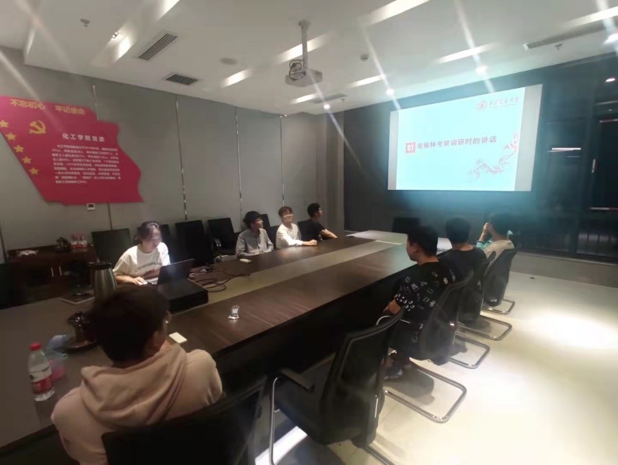 硕0145党支部在2192会议室对习近平总书记在陕西榆林考察时的讲话开展专题学习活动,党支部书记康祥主持,带领支部成员们学习习近平总书记的讲话内容,并结合自身展开讨论。