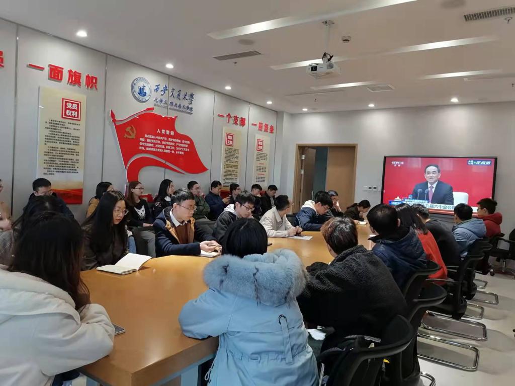 2021年11月8日至11日,党的十九届六中全会在北京举行。11月12日上午10时,中共中央举行新闻发布会,介绍党的十九届六中全会精神。学院党委组织师生在19-3182集体观看党的十九届六中全会精神新闻发布会直播,引发了91porn 师生的热烈反响。