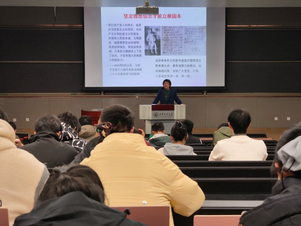 党课伊始,苗晋英同志系统阐述了理想信念在党的建设中的根本性地位。她指出,对马克思主义的信仰、对社会主义和共产主义的信念,是中国共产党人的政治灵魂,是在风险挑战面前保持坚定立场和强大意志的根本支撑。她强调,理想信念不坚定,就会导致“精神缺钙”,广大青年必须在持续学习和实践中筑牢信仰根基、补足精神之钙、把稳思想之舵。她特别提到,革命先辈的家书是理想信念教育的生动教材,鼓励青年学子从中汲取精神养分,真正做到内化于心、外化于行。