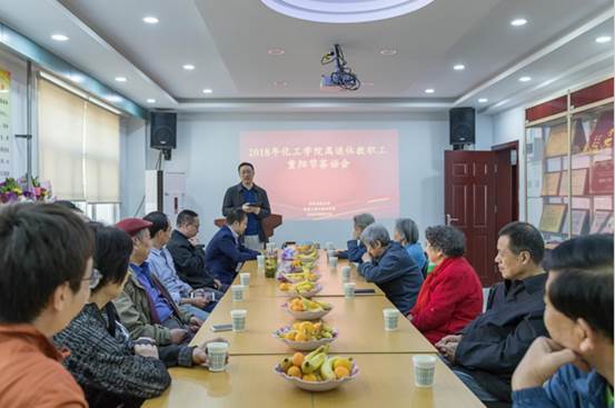 工会组织召开了学院退休教职工重阳节茶话会。“九日黄花酒,登高会昔闻”,化工、化机和高分子三个专业方向的退休教职工,他们曾经一起为学院建设发展贡献了力量,今在交大生活区离退休处欢聚一堂。