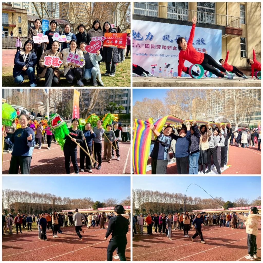 3月7日下午,运动会如期在兴庆校区运动场上举行。化工巾帼战队由学院分党委书记苗晋英带队,队员涵盖了国家级青年人才、教授、副教授、高级工程师、工程师及行政管理人员。在“龙行龘龘 前程朤朤”、“团结奋进 接续奋斗”、“欢“绳”笑语,“绳”彩飞扬”、“青春接力,迎“篮”而上”四个项目中,大家共同出谋划策、团结协作,展现出了化工女性拼搏向上、积极进取的精神风貌。